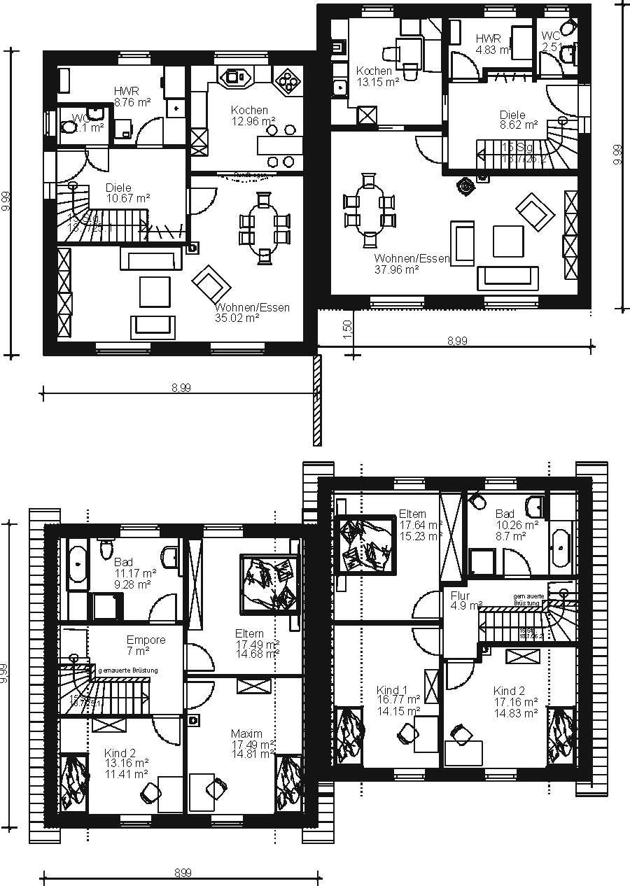 Wohnflächen ergeben (bei gleich bleibenden Außenmaßen)!